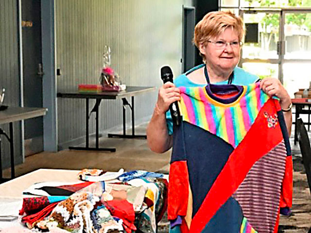 Janet Shafik-Bailey demonstrating to members that no scrap of material need be wasted.